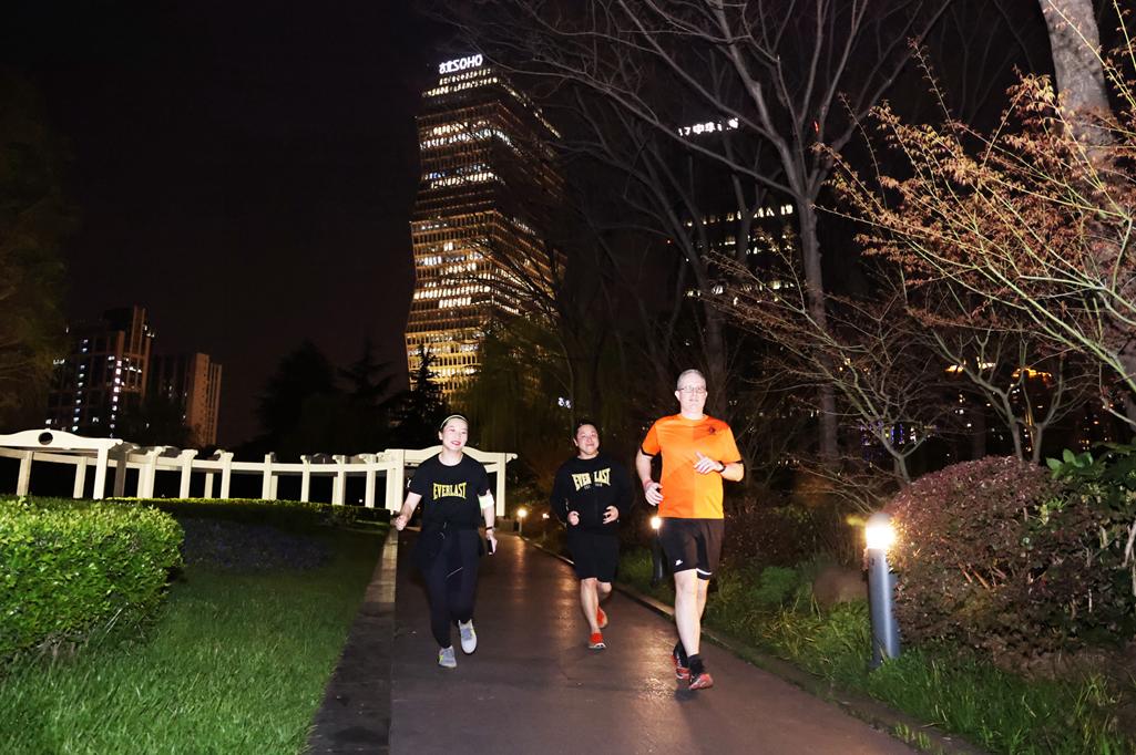 几组唤醒跑者身体机能的强度训练后,LRC成员换上运动装备,从尚嘉中心到达扬子江万丽酒店,用奔跑的步伐丈量城市夜色。置身虹桥商圈,惊喜地发现隐藏在繁华高楼中的城市花园,穿越树林窄窄的小道,在新虹桥中心花园奔跑,在自然中感受生命悦动的步伐。商圈的静谧美景,在这里被无限放大。