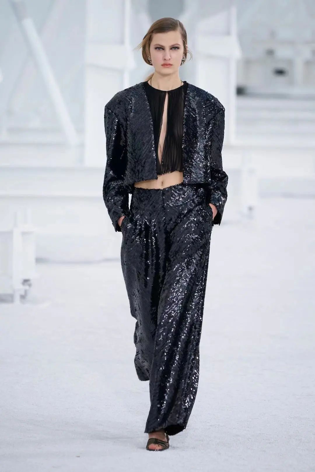 Chanel家的秀场延续一贯的黑白灰,不过在众多的粗呢花服饰中,最让人惊喜的还是短款上衣,搭配高腰下装,给气质的小香风注入了几分性感~Chanel
