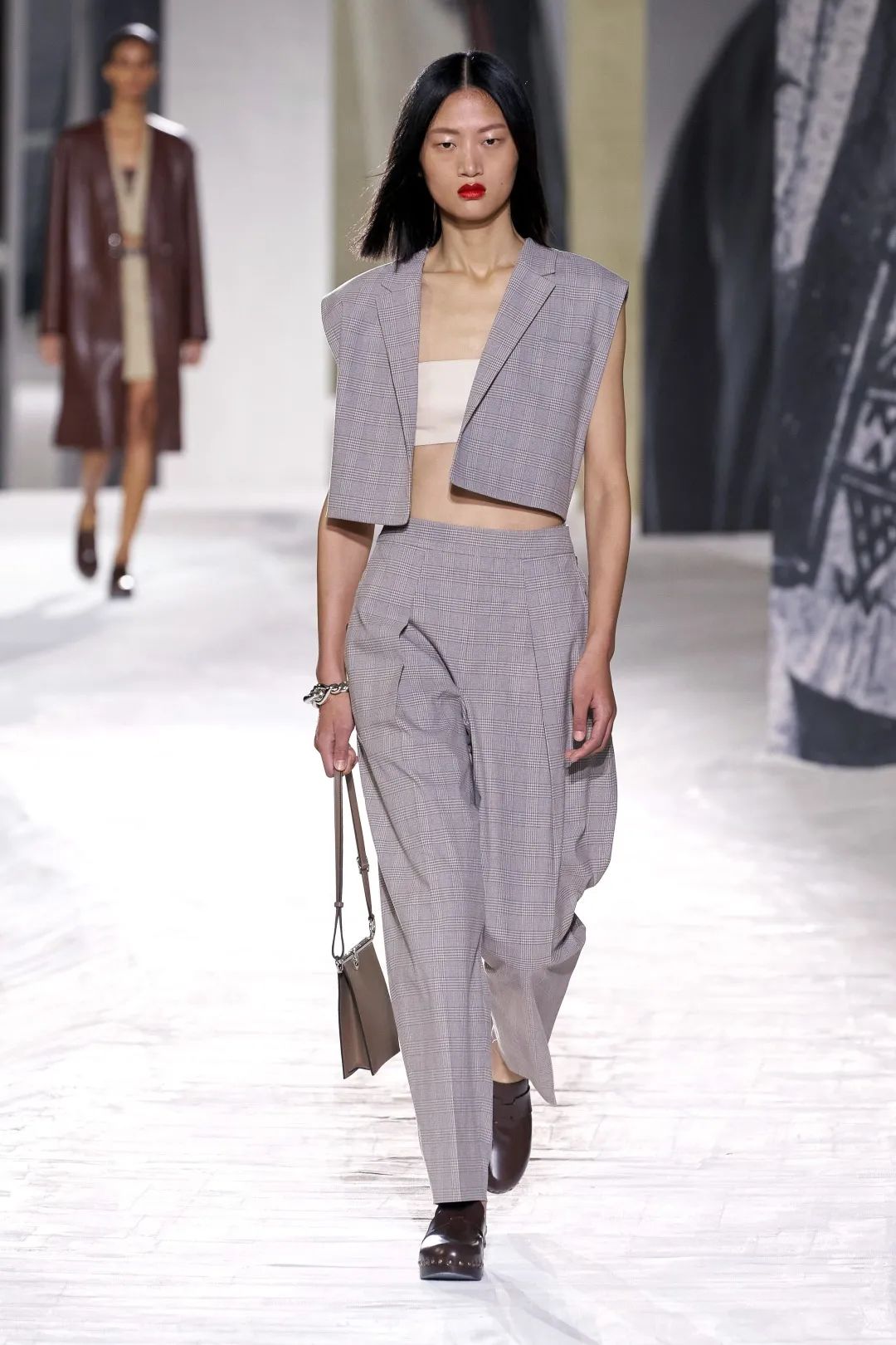 Spring 2021 Ready-to-Wear而爱马仕的秀场也出现了短款马甲,与Bralet、白色衬衫搭配,将春夏的清爽气息给烘托出来~