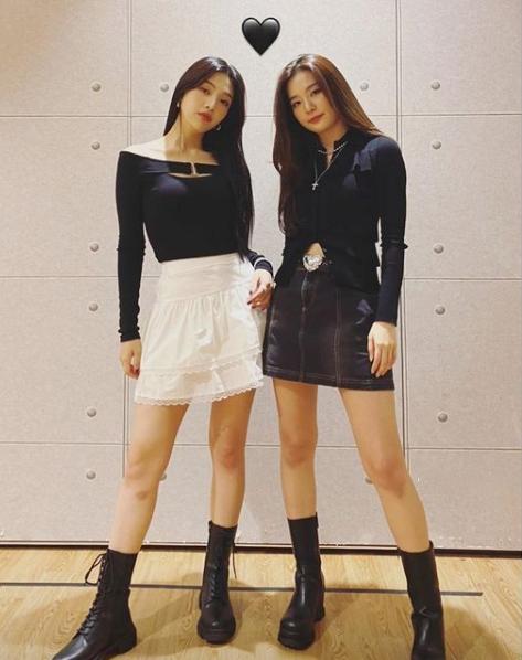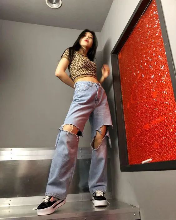 “性感炸弹”Joy就很喜欢穿短T恤,搭配牛仔短裤或破洞裤,清爽又时髦,凹出大长腿真是绝绝子~
