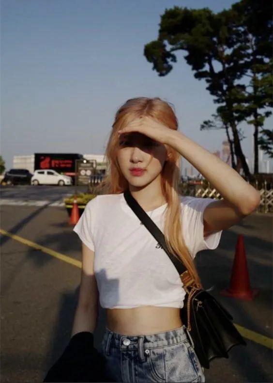 Rose的很多私服,也都会出现短上衣,放大她的身材优势。而且简单的配色更适合春夏,配一条牛仔裤就能时髦出街~