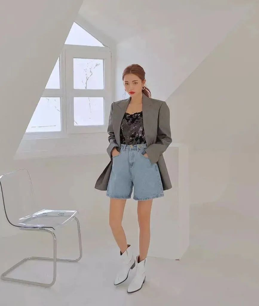 除了短裙,短裤也是穿出大长腿不可缺少的单品。不过在这里,共和君想推荐大多数人都能驾驭的爸爸裤,长至膝上2/3公分的长度,加上宽松的版型,真的不要太显腿细~