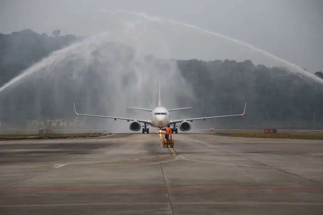 3月28日上午7时30分,随着东方航空MU9739航班平稳降落在普洱思茅机场,普洱至北京(大兴)直飞航线正式开通。飞机降落在普洱思茅机场时,还举行了“过水门”仪式。
