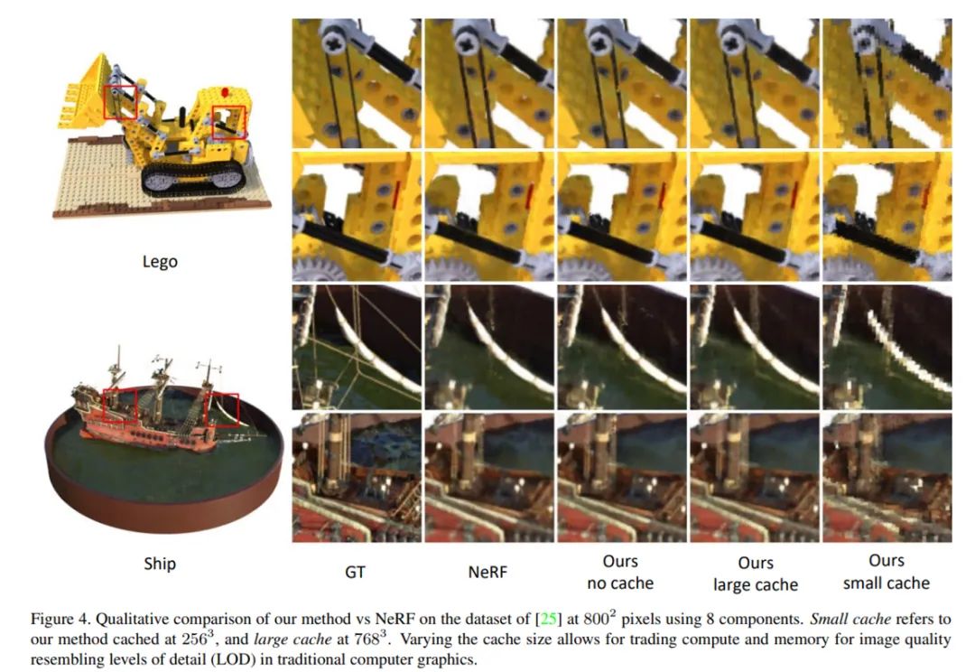 实际渲染效果对比。推荐:微软新架构 FastNeRF 实现 200 帧的神经渲染。