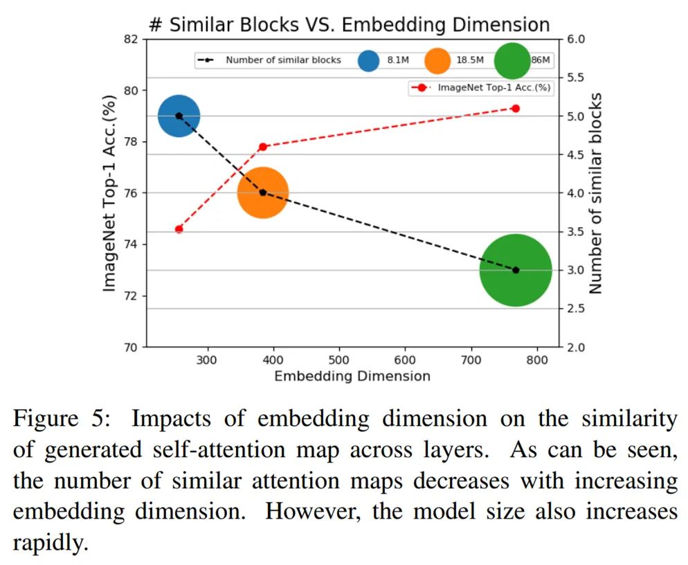 嵌入维数对跨层生成自注意力图的相似性的影响。