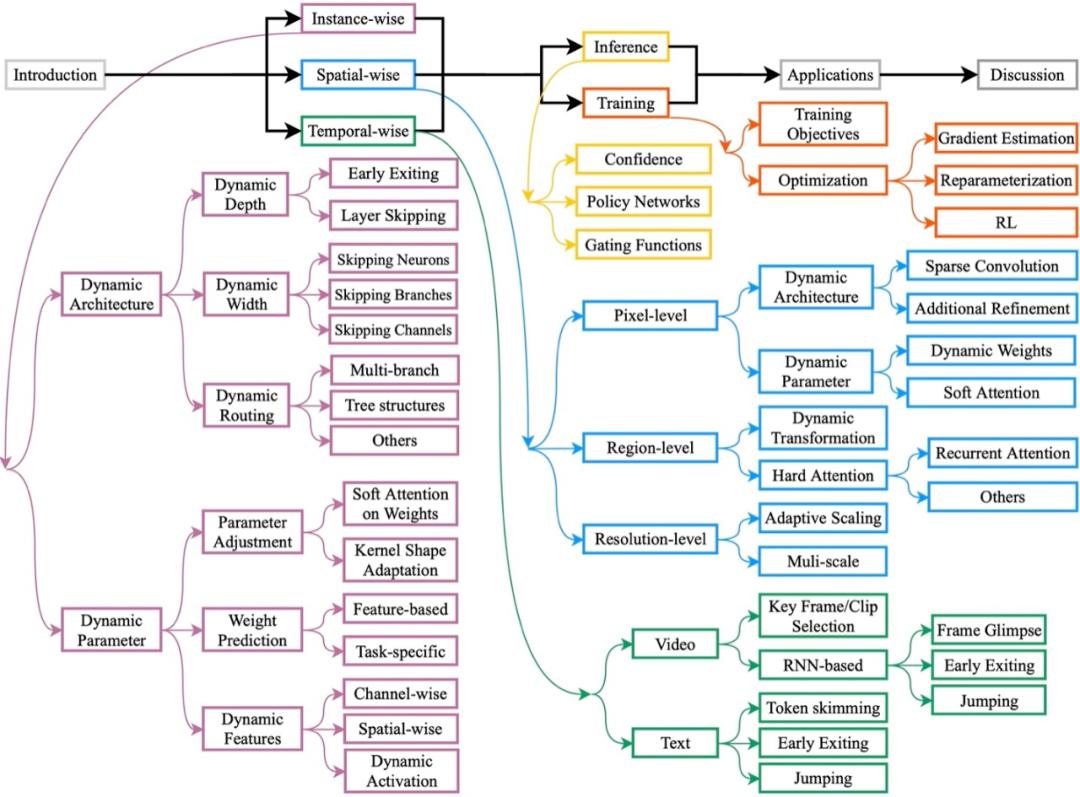 摘要:本文对近年来引起较大研究热情的动态神经网络 (Dynamic Neural Networks) 做了一个比较全面和系统的综述。第 1 章介绍了动态网络的概念、优点以及综述动机。第 2 章主要介绍了最为常见的样本自适应动态网络:模型能够针对不同输入样本,自适应地调节其结构或参数。第 3、4 章中分别介绍了两种更细粒度的动态模型:空间自适应和时间自适应动态网络,分别从每个输入样本的空间、时间维度进行自适应推理。第 5 章总结了动态网络的决策机制和训练策略。第 6 章介绍了动态网络的应用。最后,领域内的开放性问题与未来研究方向在第 7 章中进行讨论。