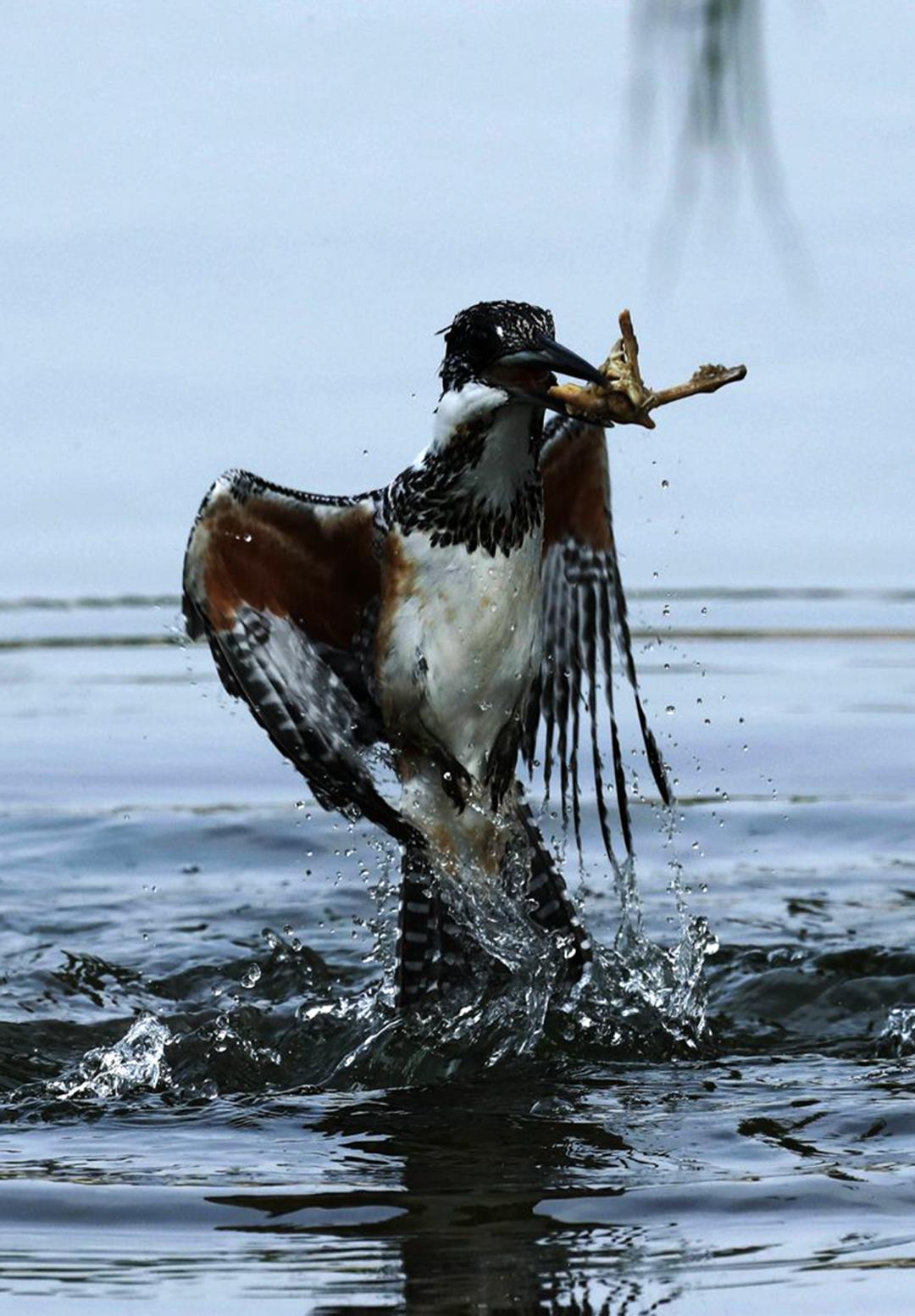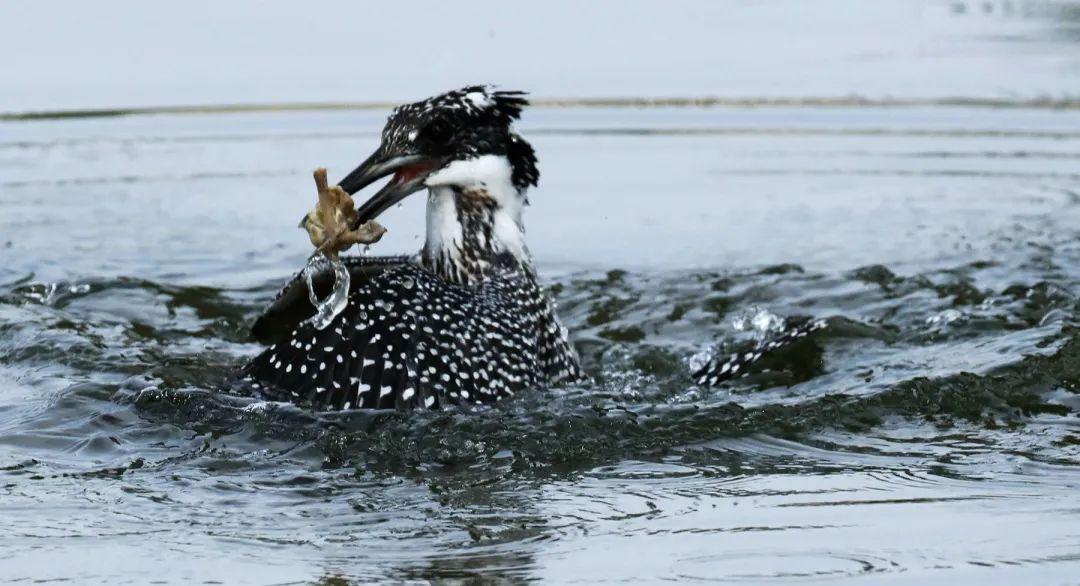 冠鱼狗扎入水中后