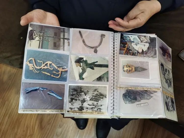 杨晓邬向记者展示三星堆文物修复前的一些照片