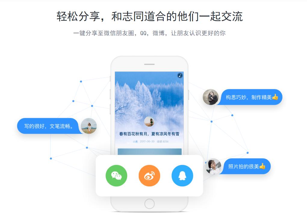 过去,用户只能在微信或者微博上发只言片语,没有渠道去表达完整的游记或心路历程。相比于微信朋友圈,美篇还能实现跨平台的二次传播。