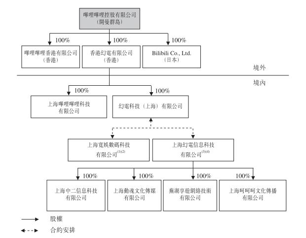 上市公司开曼群岛Bilibili Inc.进而100%控制B站的几大境外实体子公司、境内实体孙公司。