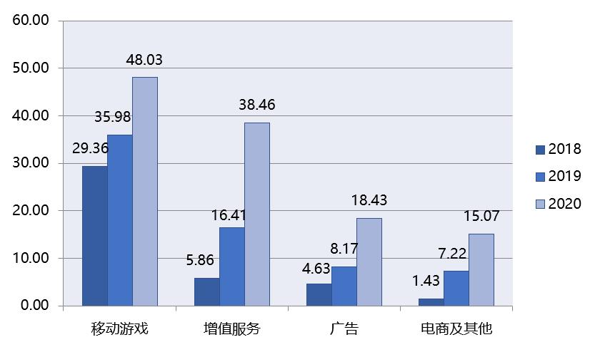 2018-2020年B站分板块营收变化(人民币亿元) 来源:招股书数据,作者绘制2018年在纳斯达克上市之初,业界认为B站是“一家社区化的游戏公司”。即便B站近年来一直试图走出这个定位,但2020年,B站营收中游戏依然是大头,达到48.03亿元——不过占比下降到了40%,2018年占比曾高达71%。