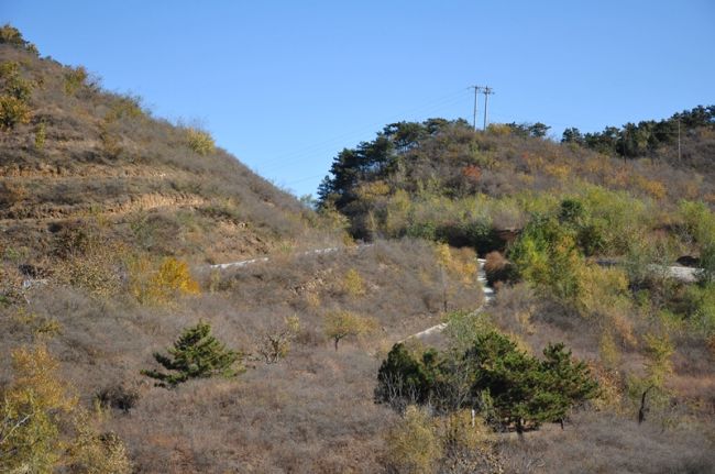 正值秋天,山坡上有些红叶,很漂亮。