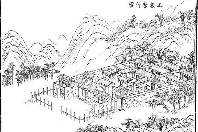 从图画看,两间房行宫的规模比较大,记载里说它有超过400间房屋,在旁边的山上还有亭子等花园建筑。