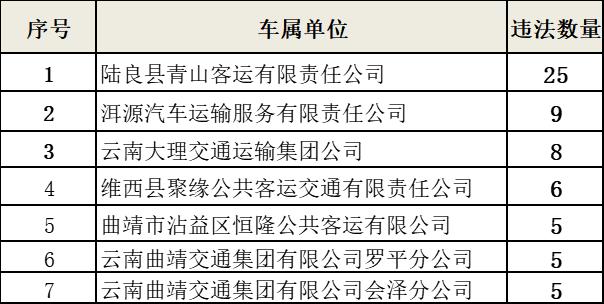 营运客车超员违法情况:2月份,全省查处本省籍客运车辆超员的交通违法194起,共涉及82家道路客运企业。发生客运车辆超员违法5起以上的客运企业7家,如下表所示: