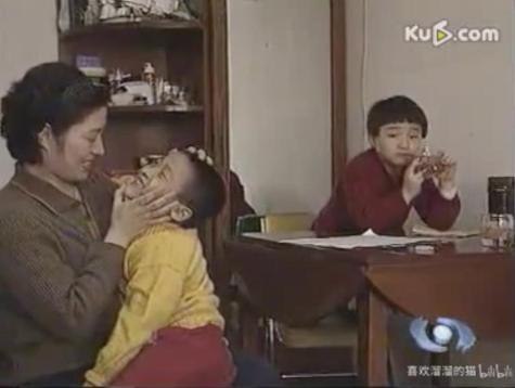 纪录片里有一幕令人心酸。妈妈抱着撒娇的弟弟,笑着看他的牙齿。蕊蕊在一旁坐着,像是这个家里多出来的那个人。