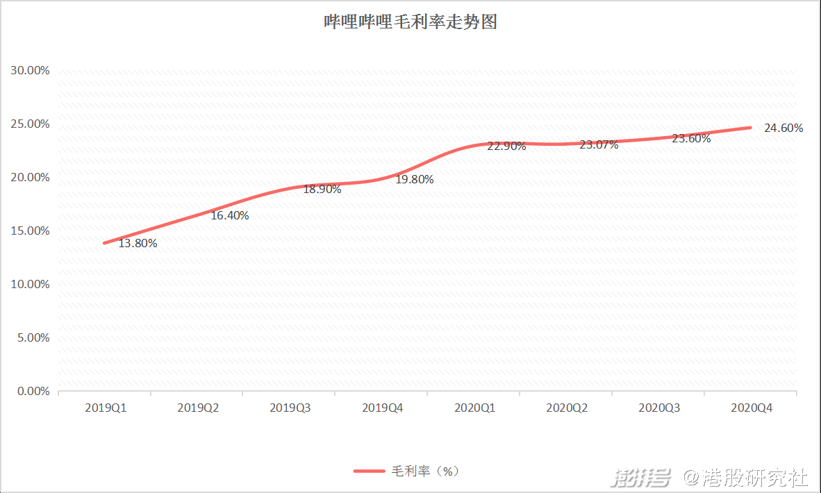 当然,在B站营收增长尤为迅速的同时,亏损的问题也同样被市场关注。截至2020年,B站仍面临30.54亿元的亏损。不过,细看B站以往的财报数据,其毛利率却已实现连续8个季度的攀升。毛利率稳定增长的背后,实际上也是在向外界传递出B站盈利能力在不断增强的讯号。