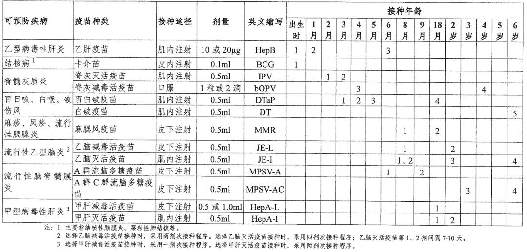 表2. 国家免疫规划疫苗儿童免疫程序表