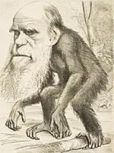 讽刺漫画反映了1870年代基督徒于“人类与猿类具有共同祖先”这个观念的反对。/维基百科科学史学者迈克尔·谢尔默在《科学美国人》杂志上发表的文章中指出,对于“自然选择”与“适者生存”这两个流行短语,至今仍然存在很深的误解,成为“公众的迷思”。