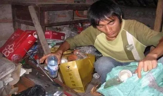 刘秀祥住的稻草屋和木房子为了赚钱换口饭吃,他四处去捡垃圾收废品,去工地上搬砖扛水泥。