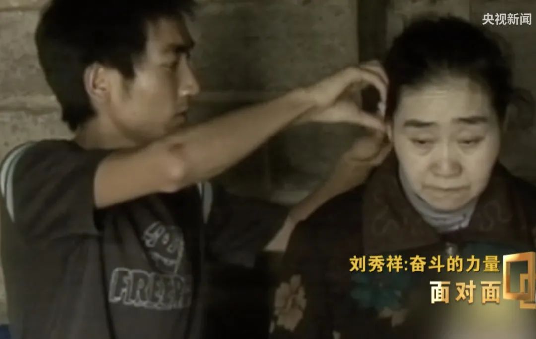刘秀祥给母亲梳头他开始一边拼命打工一边努力学习,只为实现自己立下的誓言。