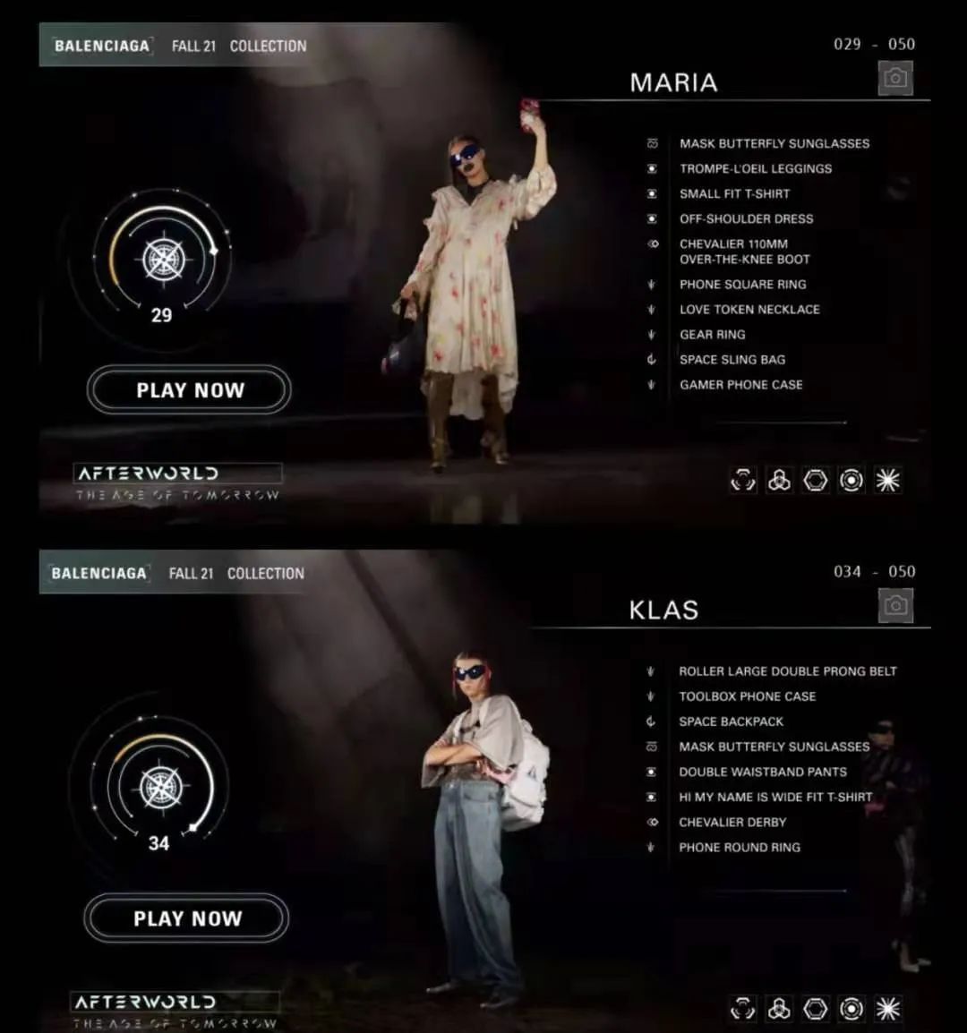 也就是说游戏的展现空间更大,给人们的体验更加丰富,能够更深入的去了解这个服装和设计师的思想。例如Balenciaga《后世:明日世界》也是依靠现代派+未来感的设计风格,将游戏背景刻意设定在距今十年后的2031年,为了突显Balenciaga的未来感美学——2021年的产品可以穿到2031年,还不被淘汰。