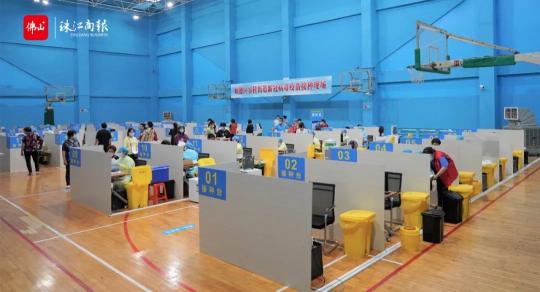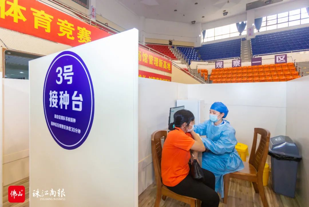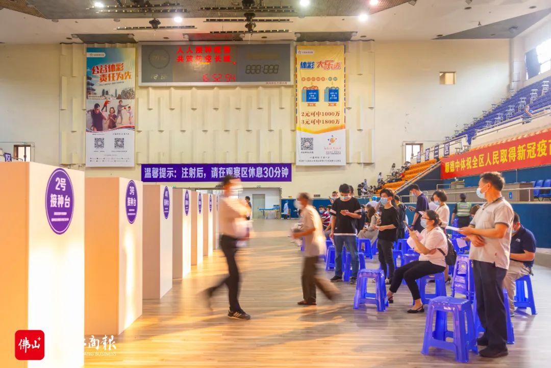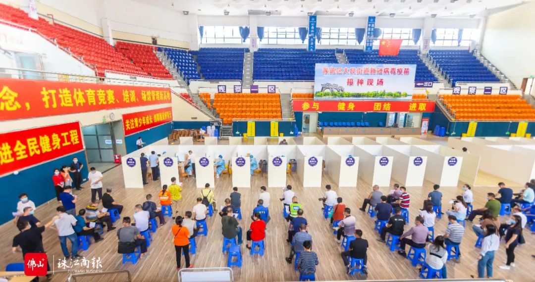 大良街道新冠病毒疫苗临时接种点位于顺德体育中心,于3月29日投入使用,现场划分了登记区、接种区、观察区等区域,并设有40个疫苗接种台。
