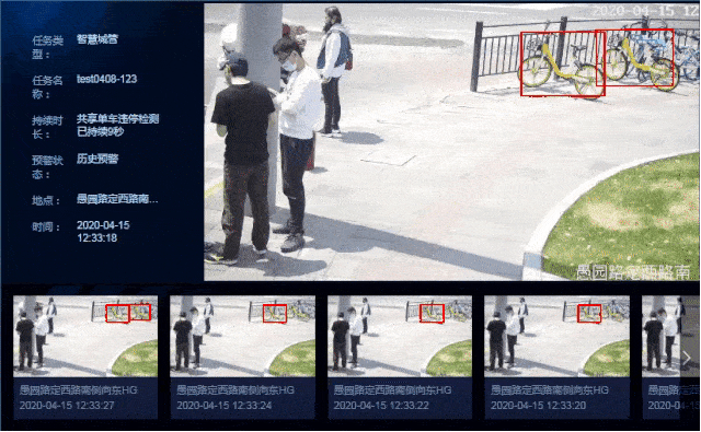 商汤共享单车违停、乱丢垃圾检测,图源:商汤