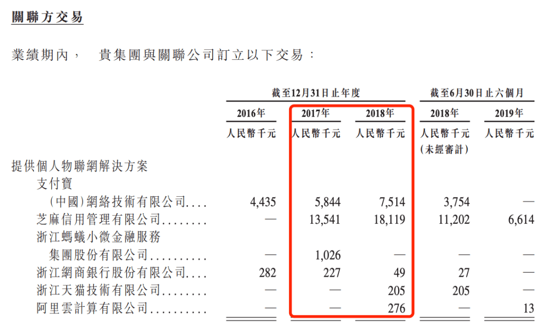 据旷视招股书显示,2017年和2018年,旷视与阿里在个人物联网解决方案的关联交易分别为2064万元和2616万元,占旷视当年相关业务营收的14.8%和15%,名副其实的大客户。