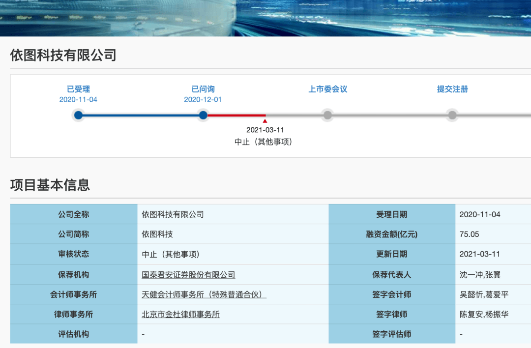 3月11日依图科创板上市中止,图源:上交所科创板官网
