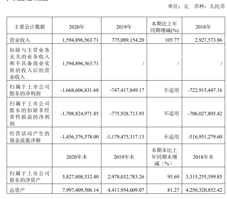 君实生物2020年主要财务数据