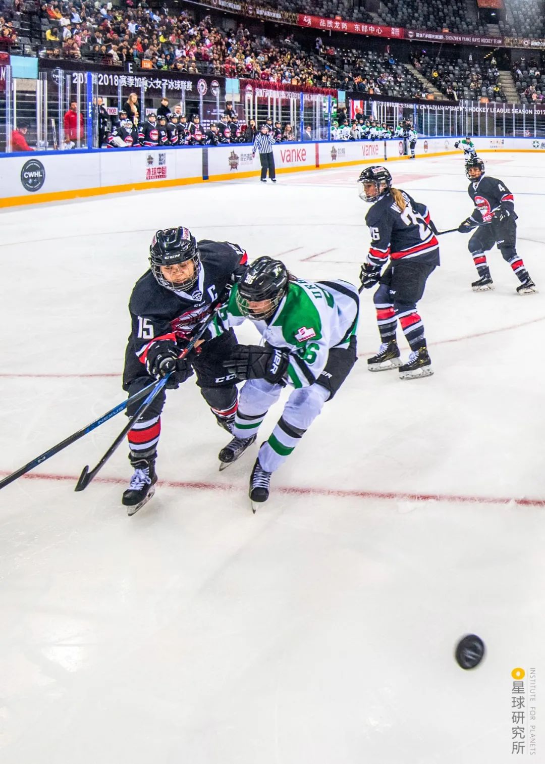 深圳昆仑鸿星万科阳光队在比赛中,2020年该队获得俄罗斯女冰联赛(WHL)总冠军,这是中国冰球俱乐部首次获得世界顶级女冰联赛冠军,该队主场即在深圳大运中心 | 摄影师@邓飞