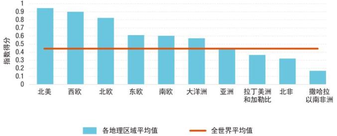 ▲按地理区域划分的平均指数得分排名最高的国家大都是最富的国家,但也有不少发展中国家表现特别出众,其表现明显优于人均GDP所反映的水平。表现最好的是印度,其次是菲律宾。若以该指数中的研发构成部分而论,中国和印度表现良好,部分原因是这两个国家拥有大量高技能但相对廉价的人力资源。此外,两国拥有庞大的本地市场,吸引了跨国企业的投资。越南和约旦也表现良好,反映出政府的扶持政策发挥了作用。
