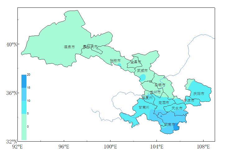 此次降水过程, 我省部分地方最大累积降水量将达到25~40毫米。据统计,1991年以来,3月25~4月5日全省平均降水量6.4毫米,河西1.8毫米、河东7.8毫米;河东地区历史同期降水量最大值为2002年24.7毫米,最小值为2004年0.9毫米,2020年为11.4毫米。兰州市、白银市及河西大部历年平均降水量在5毫米以下,临夏州、甘南州西部、定西市、天水市北部、平凉市和庆阳市为5~10毫米,省内其余地方为15~20毫米。