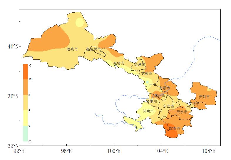 甘肃省近30年3月25~4月5日平均气温分布图全省大部气温将下降5~7℃