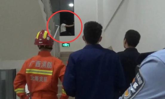 ● 2021年3月12日凌晨2时许,北海市某中专院校内,一名女生因家庭原因且与同学闹矛盾,欲从宿舍楼6楼跳楼轻生,后经警方和消防队员联手将其救下。
