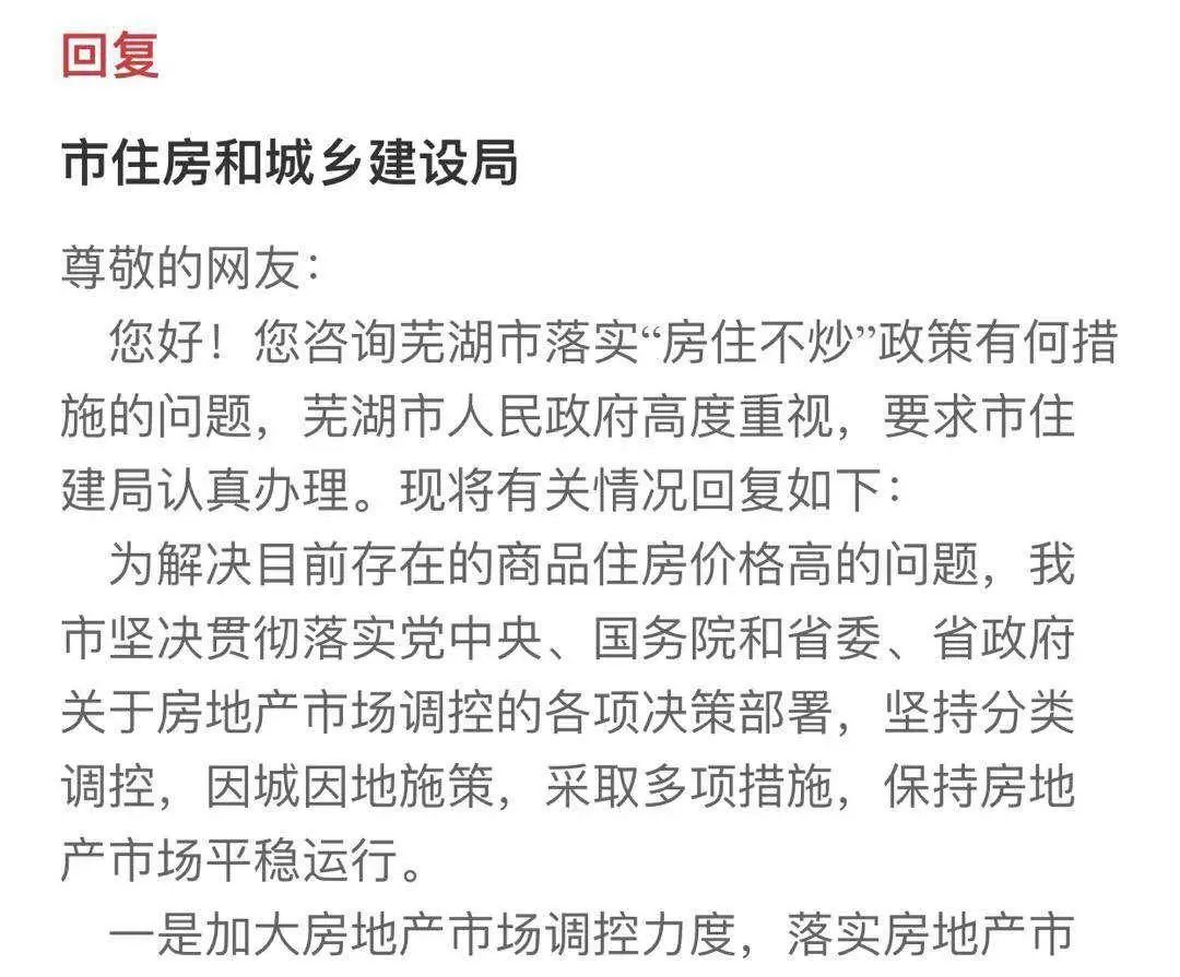 原标题:《如何落实“房住不炒”?芜湖住建部门回应了……》
