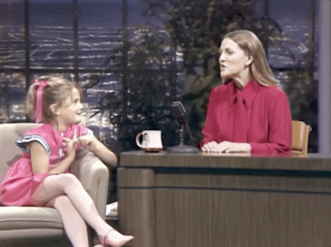 1995年,Barrymore上David Letterman的脱口秀,得知刚好是他48岁生日,她毫无预兆地冲上了桌子跳起热舞,并亲吻了这位主持人,引发巨大轰动当过所谓的“坏女孩”,也尝过失败的滋味,成年后的Barrymore用实力证明了她的成功,并不只是因为背景和运气。