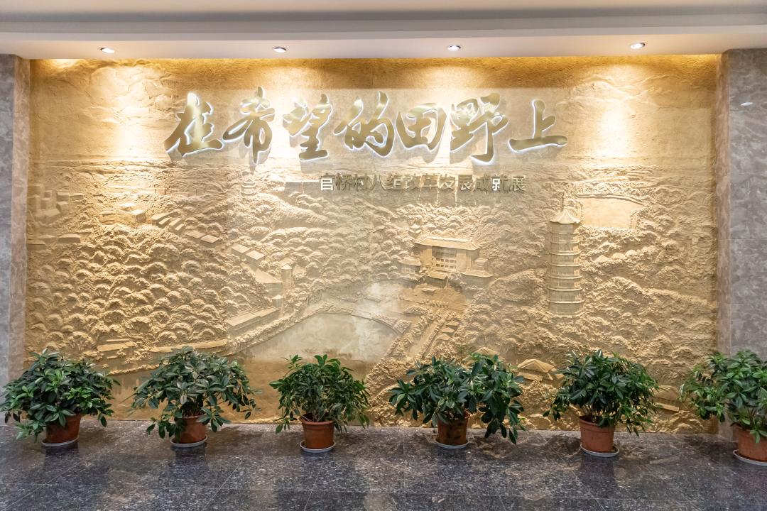 展厅二楼田野农博馆布有官桥村八组改革开放40年来,在党的领导下中国农村发展历程和田野发展历程,展现田野产业内容,勾勒田野未来蓝图,坚持以小见大,以史证道、以德启志、以物传情、以势兴业、以景动人、以此弘扬田野精神,让往来宾客从官桥村八组的发展变化中,深切感受到中国改革开放前进的步伐,田野农博馆充分展示了官桥村八组在党的领导下奋斗历程,是社会主义新农村发展的典型缩影。