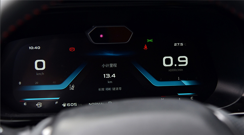 欧尚X5拥有经济、舒适、运动和赛道四种驾驶模式,模式切换按键放在了空调控制区的右侧。在不同的驾驶模式下,方向盘转向助力的力度、油门响应速度、变速箱降档速度都会有所不同。而最值得一提的就是这个赛道模式,通过按键、语音或者手势(对着仪表盘上的摄像头比一个ok的手势)切换到这一功能后,仪表盘会切换成红色主题,中控大屏内开始显示方向盘的转向角度、时速转速、油门开度、涡轮压力、海拔、坡度等信息,油门响应变得十分迅速,转向手感变沉,车内音响也会发出模拟声浪。甚至在做Kick-Down动作时,中控车辆动画还会呈现出NOS氮气加速的画面。对于那些喜欢驾驶的用户来说,偶尔野一下未尝不可,只是模拟声浪的声音略显刻意了一点。