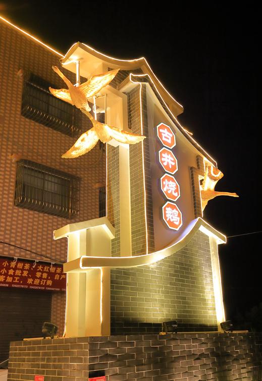 彭伟宗摄古井镇霞路村,有着一条烧鹅美食街,来到这里,当然要逛吃逛吃这么美味的烧鹅,怎能不试?除了吃古井烧鹅你还可以从壁画和雕塑处,了解这个地方的文化内涵。