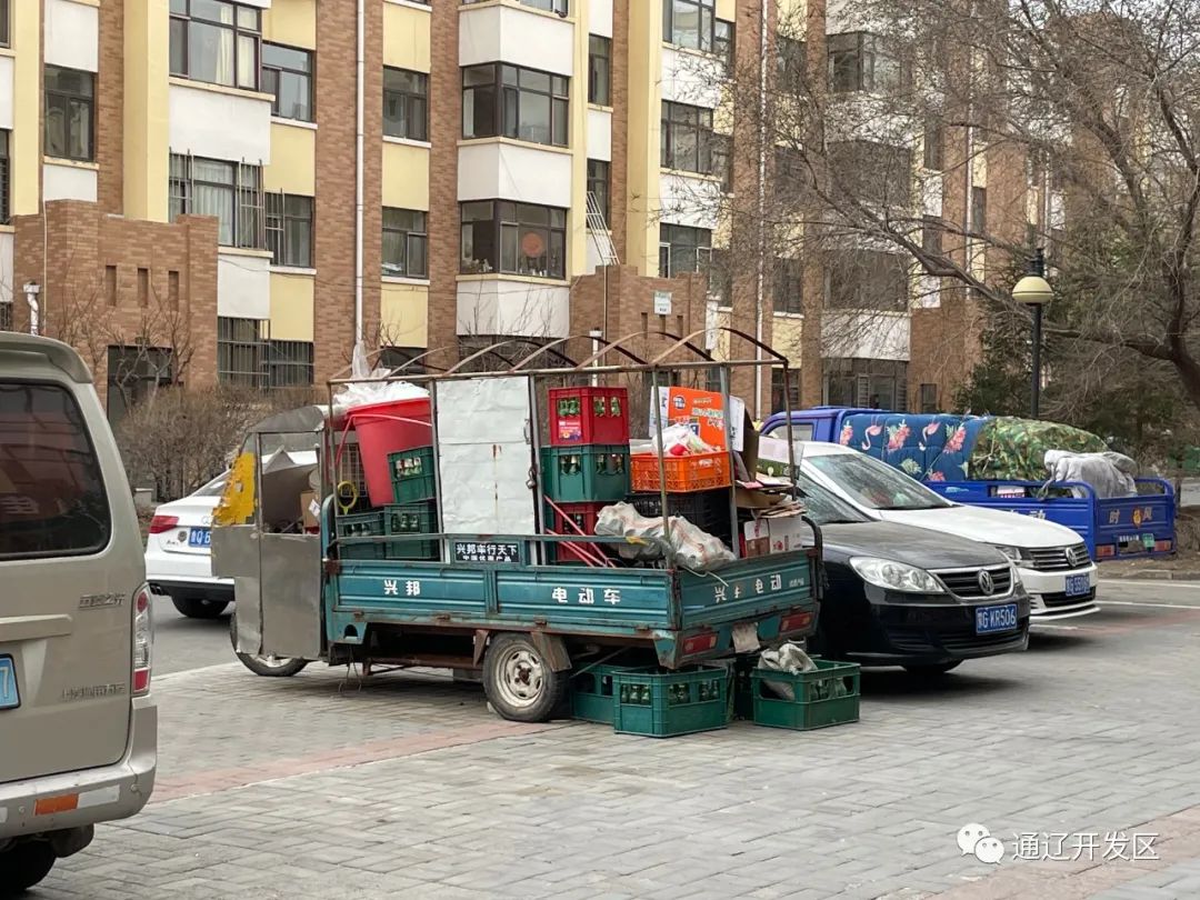 在新城街道中信亚龙湾小区记者看到,在A8号楼前广场上,一辆三轮车停放在小区公共区域,周围堆满杂物,无人清理。作为该小区的物业服务企业,沈阳新湖绿城物业服务有限公司通辽分公司中信亚龙湾小区项目部同样违反了《内蒙古自治区物业管理条例》相关规定。