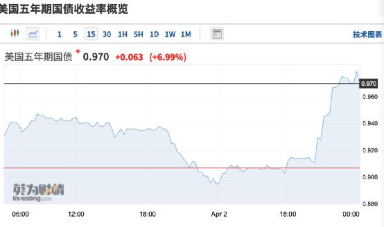 美股市场也迎来利空,最新非农就业数据发布后,美债收益率飙升,5年期美债收益率再创一年多新高。