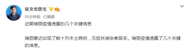 4月2日,上海复旦大学附属华山医院感染科主任张文宏通过微博发布了“近期瑞丽疫情透露的几个关键信息”关注云南瑞丽疫情。