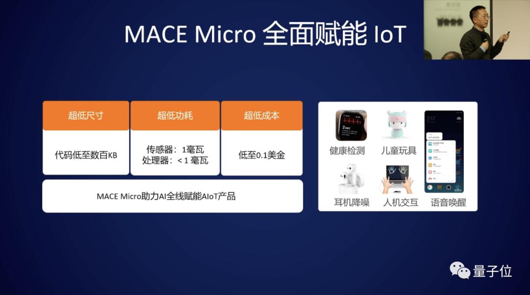 最后,王斌介绍了小米在AIoT开源上的工作,包括:小米自然语言处理平台MiNLP、在移动端使用的机器学习框架MACE、针对IoT设备的MACE Micro。其中MACE Micro是在去年小米开发者大会上开源的,这是一个用于微控制器的AI框架,可以在功效1毫瓦、成本0.1美元的边缘设备上运行,让更多AIoT设备可以在端侧拥有AI能力。