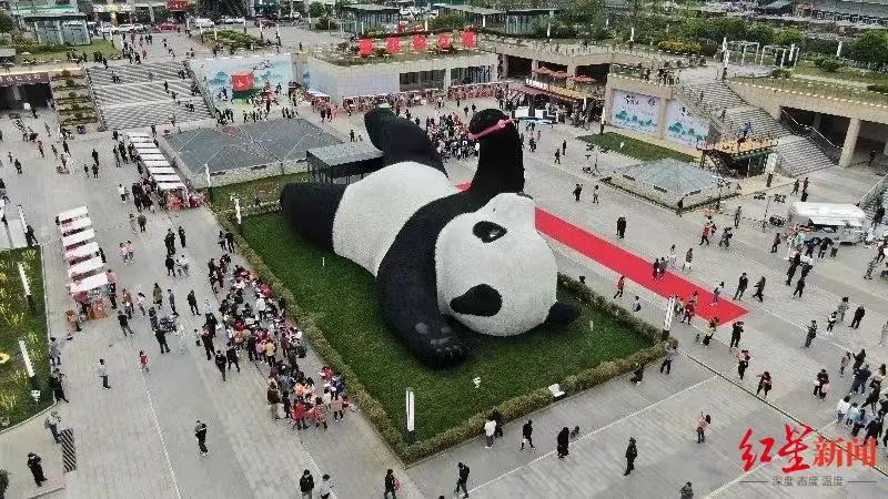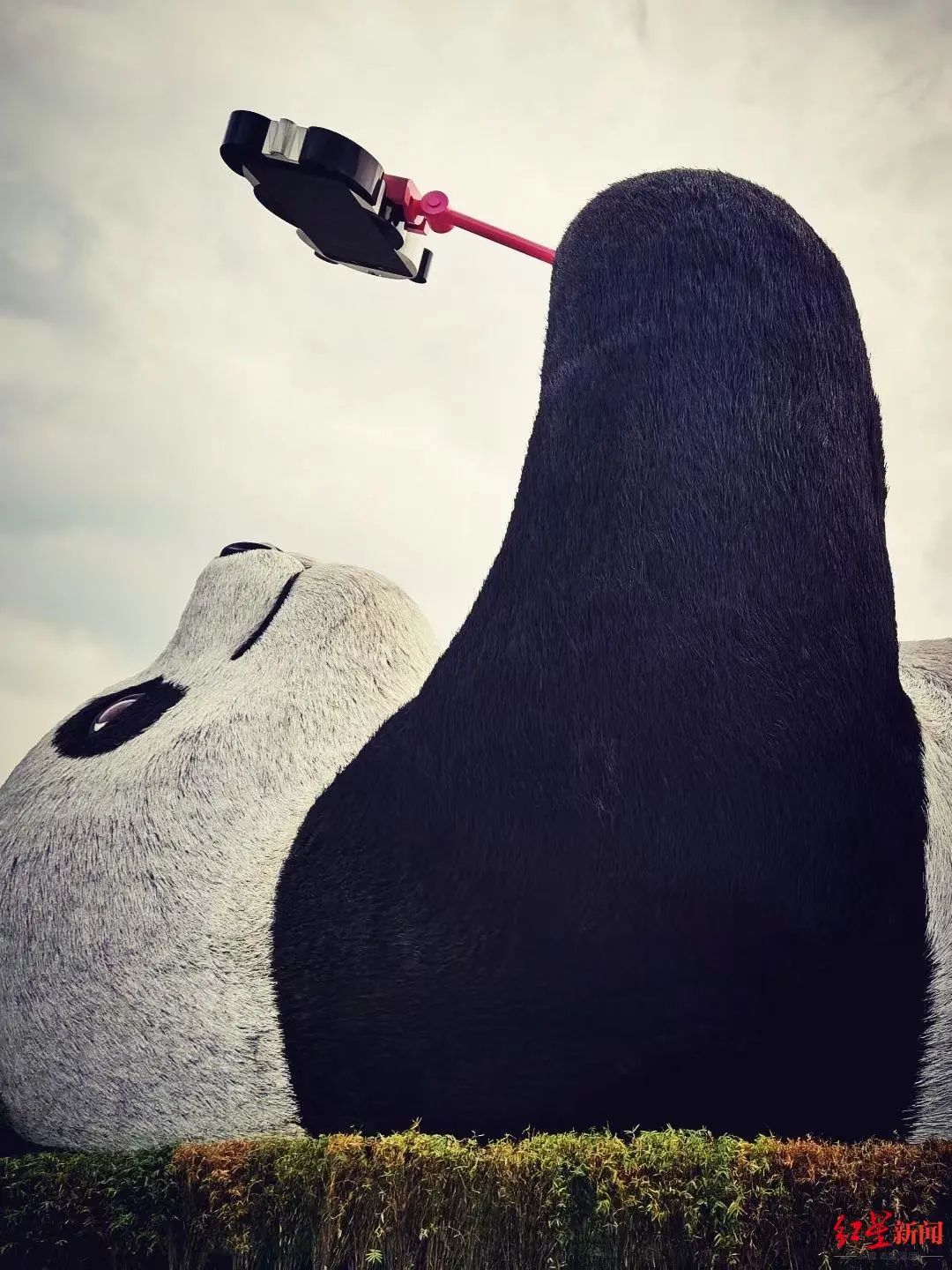 这只XXXXXXXXL号的仰卧自拍“熊猫”长26米,宽11米,高12米,重达130吨,呈翘脚自拍状摆放在仰天窝广场中央的萌物吸引了不少游客市民前去“打卡”。据了解,此次和大家正式见面后,“自拍熊猫”也将正式开启它的征名活动。