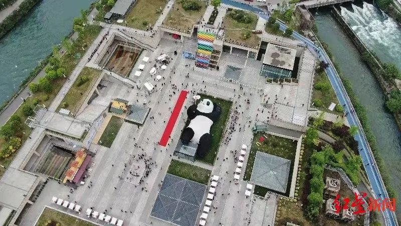 4月3日晚,地处天府绿道源头的都江堰仰天窝广场正式对外开放。由著名设计师费洛伦泰因·霍夫曼设计的大熊猫自拍艺术品雕塑也同时揭幕。