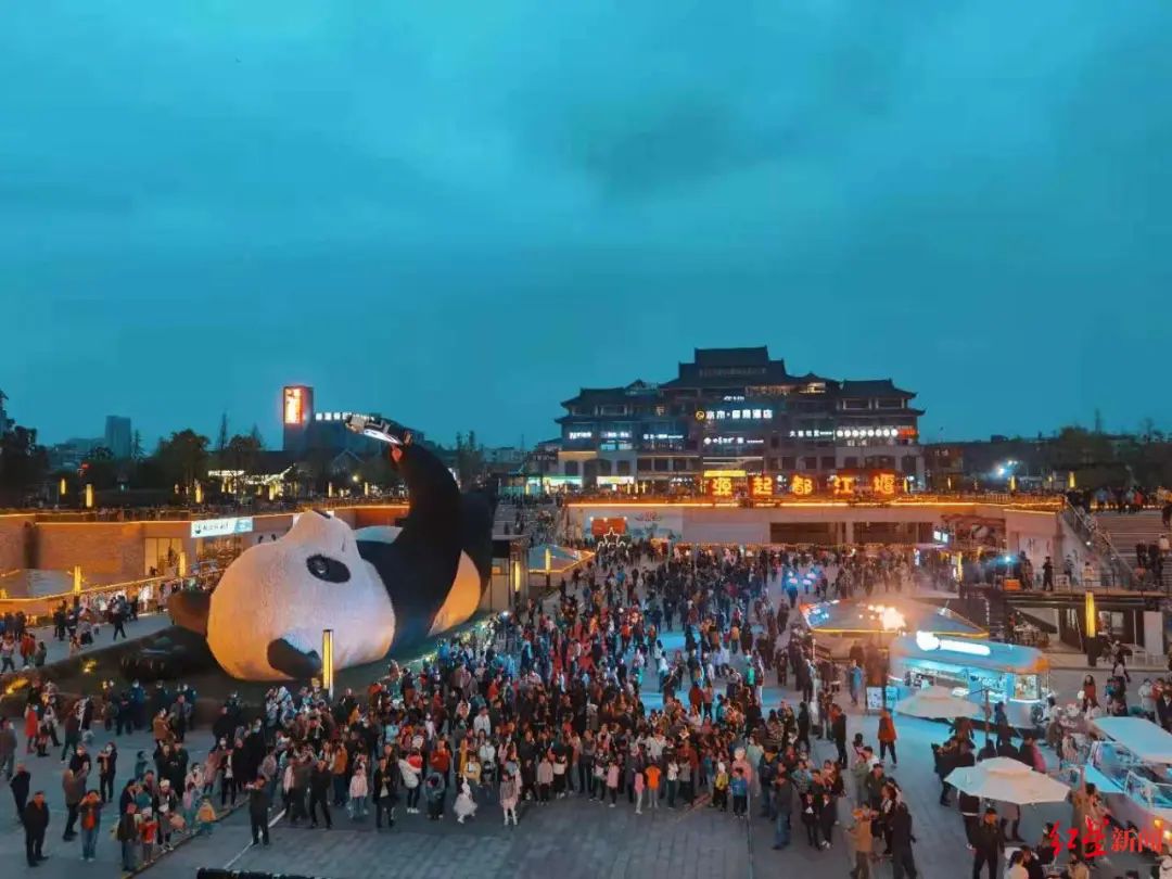 4月3日晚,由都江堰市都投集团下属新城集团投资建设的仰天窝广场及文旅集团投资建设的大熊猫自拍艺术品雕塑同步揭幕。值得一提的是,情景式揭幕也让这只巨型萌宠和大家的见面方式显得更为特别。在现场情景剧中,熊猫人偶开启了一场寻友之旅,在这一过程中也融入了都江堰、青城山、熊猫等文化元素。通过情景剧形式向市民、游客展示这件艺术品以及它身后正在“上新”的潮玩消费场景。