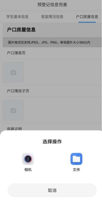 户口与房产信息一共需要上传三张照片,分别是户口簿首页照片、户口簿孩子页照片,以及房屋证明的照片。房屋证明照片分成以下几种类型,上传对应类型的照片: