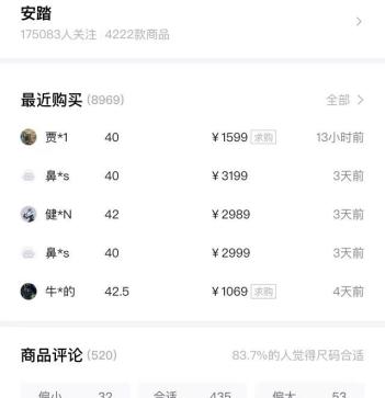 在上述安踏哆啦A梦联名鞋的成交记录上可以看到,42.5码售价为4599元,较发售参考价涨了8倍多。这款鞋最近购买记录有近9000条。