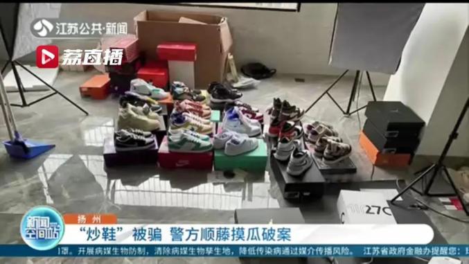 据江苏电视台公共新闻频道报道,扬州的小张想通过“炒鞋”挣点钱。前一阵,他花8万多元买了24双热门款的鞋子,却发现被人坑了。从视频截图里看,这款鞋是阿迪达斯YEEZY Boost 350 V2 2019年版。